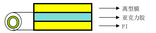 以聚酰亚胺薄膜为基材,单面背胶并贴合离型膜而成。