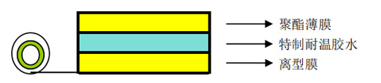 以特殊处理聚酯薄膜为基材,单面涂布耐温胶水并贴合特制离型膜制备而成。